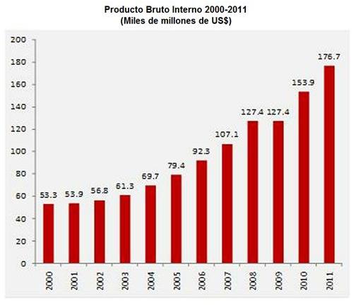 Figura 1: Evolución del PIB del Perú desde el año 2000 al 2011. Fuente: ProInversión.