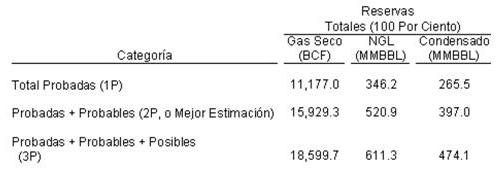 Por tanto, en el caso más conservador de incremento del consumo de gas natural, en el 2018 las reservas se habrían reducido en 5,6 TCF. De los 12 TCF actualmente catalogados como reservas probadas a finales del 2018 restarían 6,4 TCF.