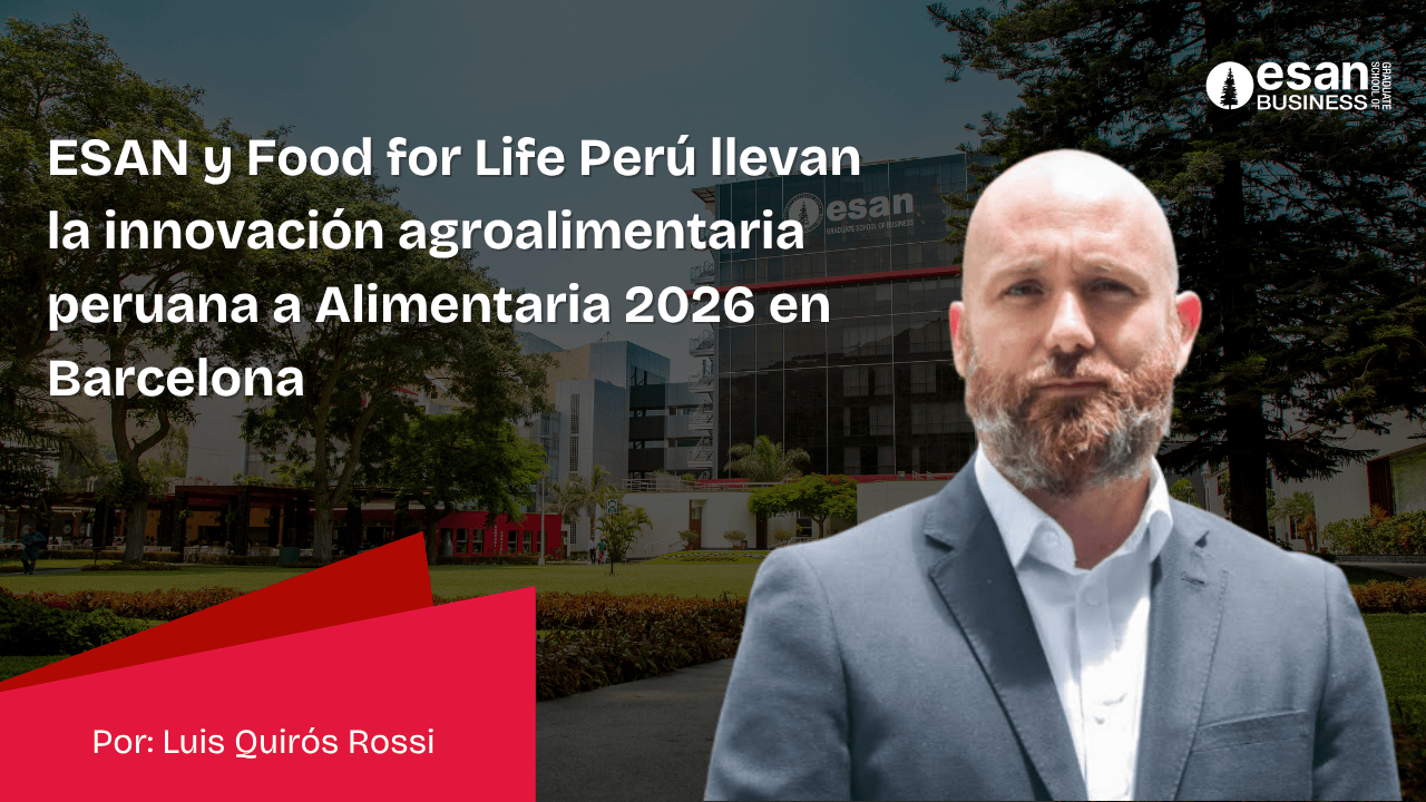 En el marco de Alimentaria 2026, Luis Quirós Rossi, director de la Maestría en Administración de Agronegocios de ESAN, presentó avances en innovación agroalimentaria desde una perspectiva iberoamericana. Su participación contribuye al intercambio de conocimiento con el ecosistema europeo y fortalece la presencia académica del Perú en espacios de I+D+i.