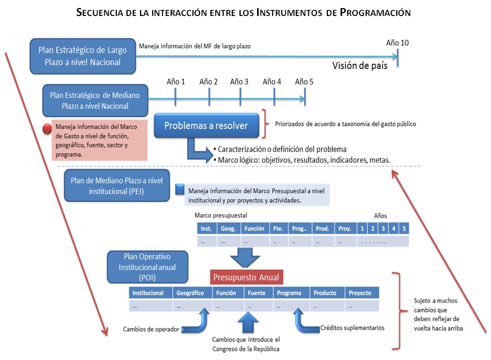 Tomado de Shack, Nelson (2011). Elaboración del Marco Conceptual para el Diseño del Proceso Integrado de la Programación de la Inversión Pública en el Perú. Dirección General de Política de Inversiones (DGPI). Ministerio de Economía y Finanzas (MEF). Lima, Perú.