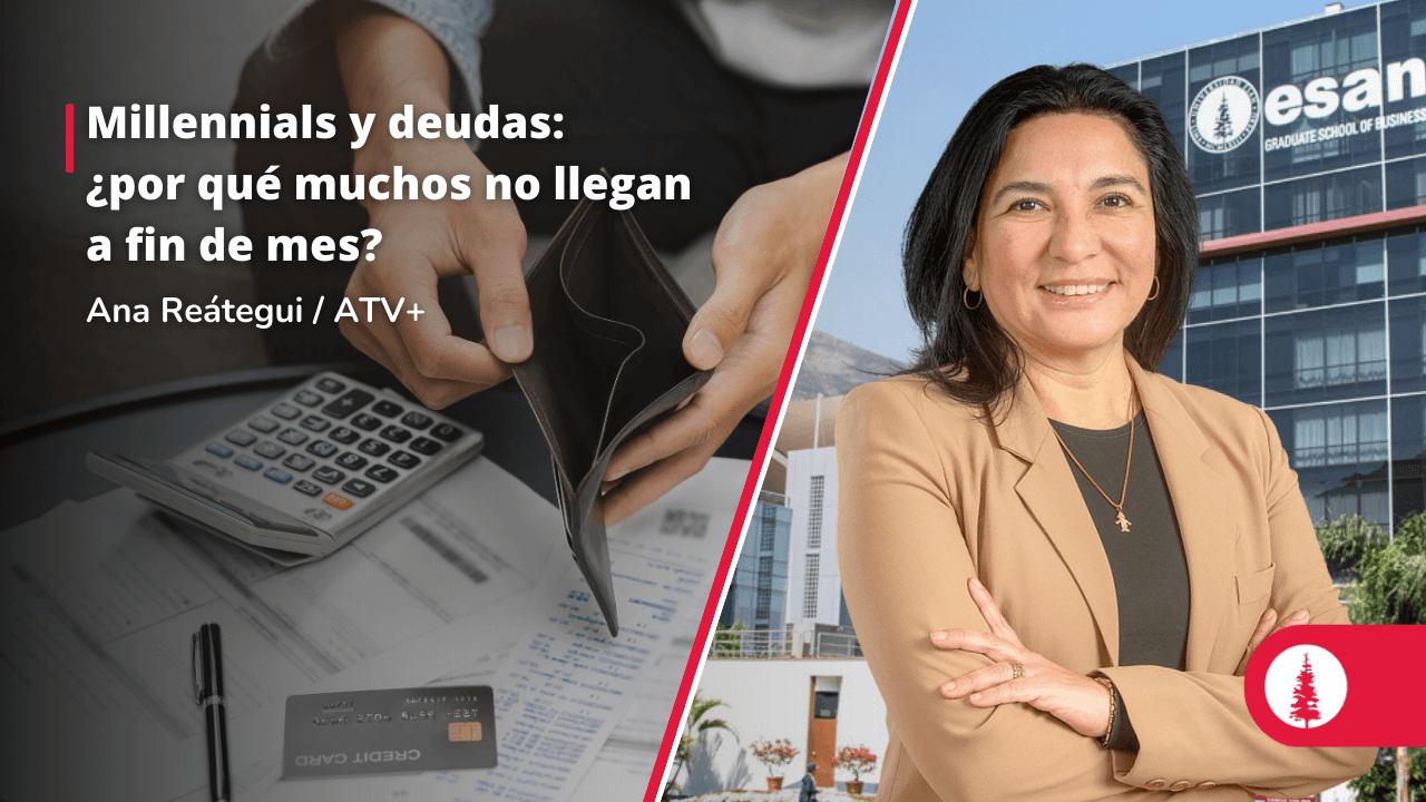 Ana Reátegui, directora general de Administración y docente de los Programas de Finanzas en ESAN, profundizó en ATV+ la paradoja financiera de los millennials. Si bien este grupo ha vivido la etapa de crecimiento económico del Perú y es un motor clave del consumo, aún enfrenta altos niveles de endeudamiento. La experta destacó un error estratégico común: priorizar el prepago de la hipoteca mientras se usa la tarjeta de crédito para cubrir gastos diarios o "suntuarios".