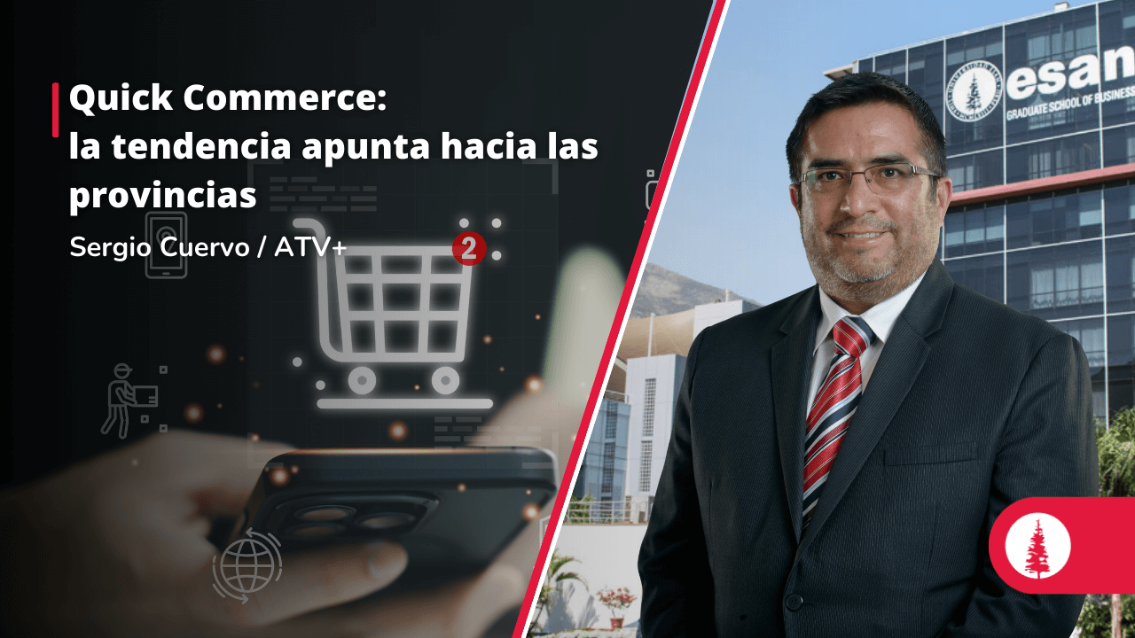 Sergio Cuervo, docente de los programas de Marketing y Dirección comercial de ESAN, destacó en ATV + el auge del quick commerce (entregas en menos de 10 min), que ha crecido un 40 % esta campaña y proyecta mover US$ 3,000 millones para 2029. El experto subrayó que, con el 80 % de la demanda concentrada en Lima, la gran oportunidad de expansión está en provincias.