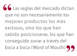 Es allí donde tenemos la tarea masiva y común. Las reglas del mercado dictan que no son necesariamente los mejores productos los más exitosos, sino los que han sabido posicionarse, los que han conseguido sonar a través del boca a boca (Word of Mouth).