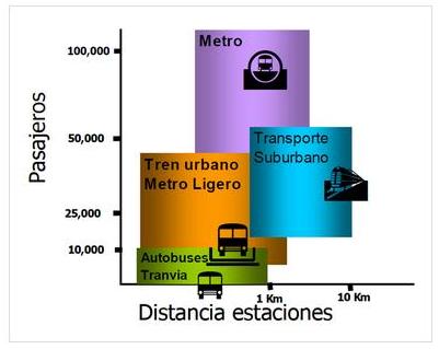 Se observa del gráfico que el tranvía es un sistema de transporte que compite incluso con un metro convencional en capacidad de transporte, siendo económicamente más barato y con menor inversión en infraestructura por kilómetro.
