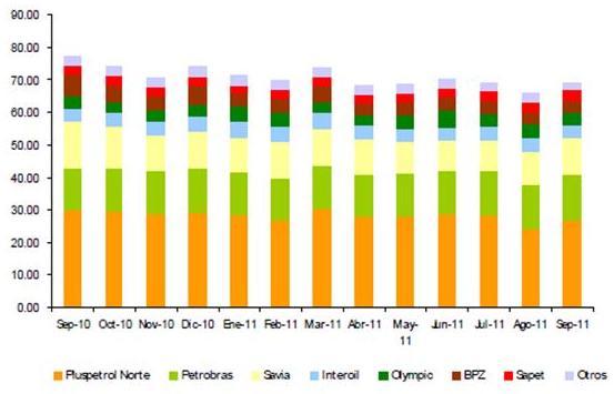 Figura 1. Producción mensual de petróleo, setiembre 2010 - setiembre 2011