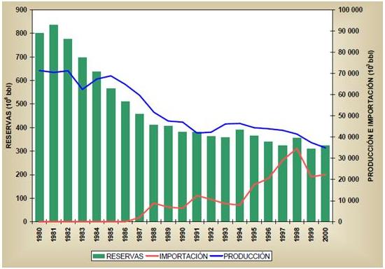 Figura 2. Producción anual de petróleo, 1980 - 2000