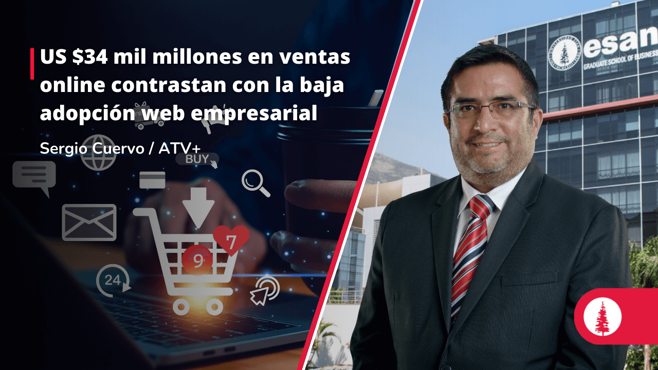 Sergio Cuervo, docente del curso E-marketing de la especialidad en Marketing Digital & E-commerce del PEE Empresarial de ESAN, analizó en ATV + los retos del comercio digital para este año, donde se proyecta un crecimiento del 35 %, alcanzando los US $34,000 millones. Además, recomendó a los emprendedores profesionalizarse mediante una página web propia y registrar su marca en Indecopi.