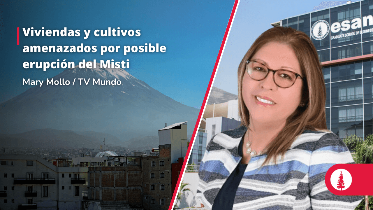 Mary Mollo, especialista en Gestión de Riesgos de Desastres de ESAN, advirtió en TV Mundo que la actividad del volcán Misti es latente y que más de 77 mil personas viven en zonas de alto riesgo por erupciones. Señaló que la ocupación informal en sus faldas incrementa la vulnerabilidad y urgió a mejorar la percepción de riesgo y aplicar medidas correctivas para prevenir daños.