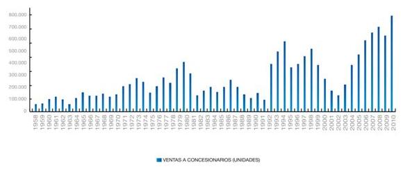 Figura 4: Evolución de las ventas de automóviles en Argentina entre 1958 - 2010